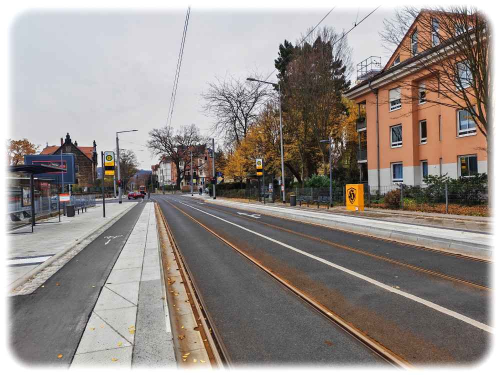 Der Abschnitt der Wehlener Straße zwischen dem Schulcampus Dresden-Tolkewitz und Wasserwerk ist bereits seit einiger Zeit wieder freigegeben. Foto: Heiko Weckbrodt